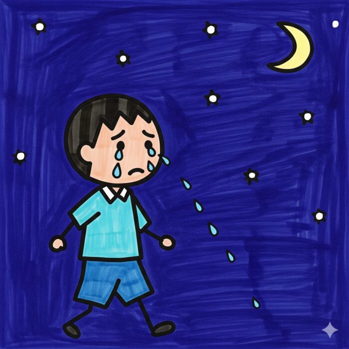 一人ぼっちの夜、涙をこらえ上を向いて歩く。