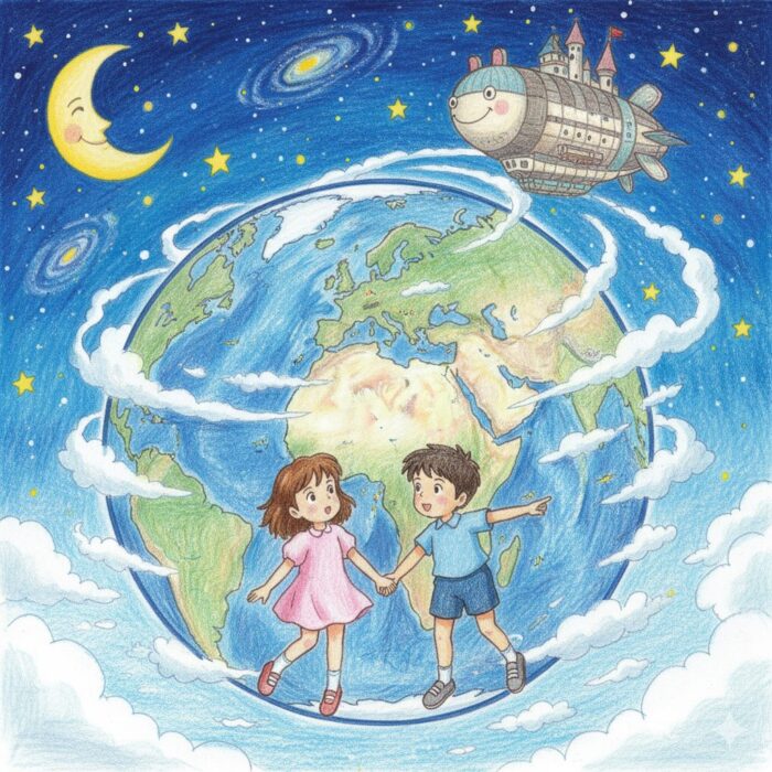 この歌詞における最重要モチーフは、間違いなく「地球」です。歌詞の中で、地球は単なる物語の舞台装置ではありません。「まわる」「かくして」「のせて」といった能動的な動詞を伴うことで、まるで意志を持った一つの生命体、あるいは神のような存在として描かれています。